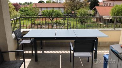 Tavolo da giardino allungabile Odyssea II NATERIAL in alluminio bianco con piano in vetro per 6 persone 180/240x100cm (Comprese 6 sedie come in foto)