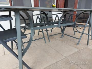 vendo tavolo da esterno 160x 100 materiale alluminio verniciato a polvere grigio antracite in buono stato parte superiore in vetro . Solo tavolo no sedie .