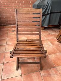 Tavolo da esterno “Garden Nettunense” in legno dim. 195x95 allungabile con possibilità di inserimento ombrellone e completo di n.6 sedie, 4 normali e 2 con braccioli. Necessita solo di trattamento del legno.