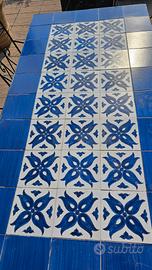 Tavolo in ferro battuto artigianale con copertura fatta con mattonelle in ceramica di Vietri, lunghezza 2 metri e larghezza 1 metro. Comprende 6 sedie in ferro battuto con cuscini. In perfette condizioni.