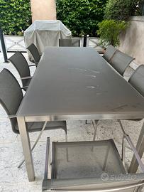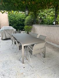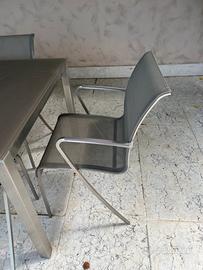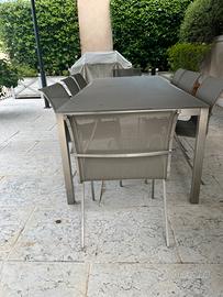 Completo con N.8 sedie marca Royal Botania mod.Poltroncina. Struttura in acciaio inox e schienale/seduta in tessuto Batyline dim.85x60x50.
