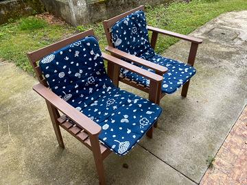 Tavolo da esterno in legno con sedie in abbinato complete di cuscini