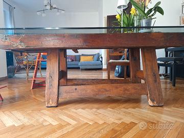 Vendo tavolo da falegname in legno massello + piano vetro (800€), vendibili anche separatamente.