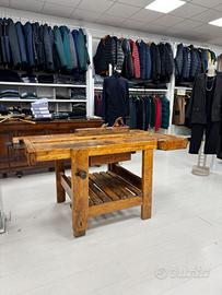 Aggiungi carattere e autenticità ai tuoi spazi con questo straordinario banco da lavoro vintage, completamente restaurato a mano e oggi utilizzato come elemento d’arredo ed esposizione in boutique di abbigliamento.