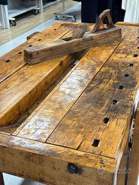 Realizzato in legno massello (1900-1910), conserva tutte le sue affascinanti imperfezioni originali che raccontano la storia del tempo: la superficie vissuta, la morsa laterale funzionante e la struttura robusta lo rendono un oggetto ricco di personalità, capace di trasformare qualsiasi ambiente.