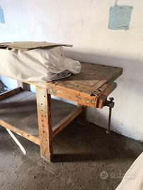 Vendo tavolo di lavoro vintage da falegname, dimensioni lunghezza 225 cm, profondità 84cm. In legno massello come da foto, oggetto di modernariato ideale per negozi che hanno bisogno di superficie espositiva, ma anche per situazioni private tipo ville stile rustico-country qualora ci fosse spazio.