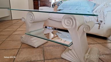 tavolo da fumo in pietra leccese intagliata a mano e cristallo molato