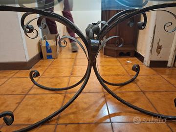Tavolo da fumo 120 cm 70cm cristallo e ferro battuto