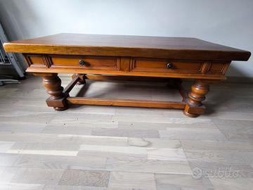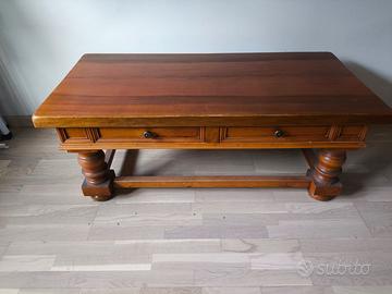 Tavolo vintage in noce massello, per salotto, con due cassetti. Misure 120x58xh45. Ritiro a Milano in zona Mac Mahon