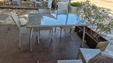 tavolo giardino in vetro con rifiniture in rattan sintetico grigio e struttura in metallo 150x90 cm (6 coperti) €70 valuto offerte per intro lotto di 3 pezzi solo ritiro in zona