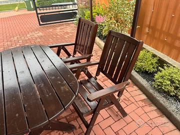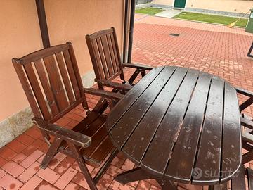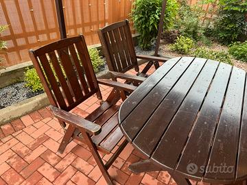 Vendo tavolo da esterno con 4 sedie pieghevoli in legno. Dimensioni tavolo 150cm x 85cm