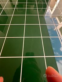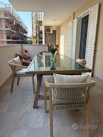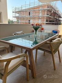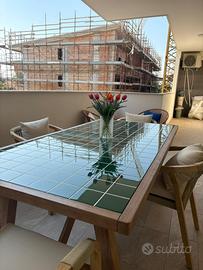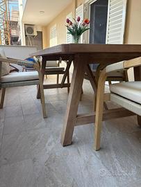 Tavolo da pranzo da esterno/giardino 200x100 in legno di acacia. Il tavolo presenta un difetto sulla superficie piastrellata, facilmente montabile. Ritiro a cura dell’acquirente.