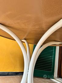 Tavolo bianco in plastica, gambe in metallo.