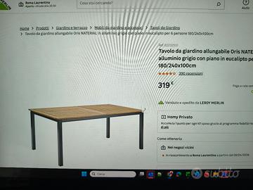 tavolo Leroy Merlin 180/240 X 100 allungabile perfette condizioni pari al nuovo
