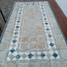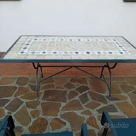 Vendo tavolo da giardino in ferro cm 90X175 con piano in muratura con mosaico di pietra.