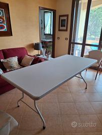 Tavolo da giardino richiudibile robusto. Utilizzato pochissimo e all'interno. Si richiude come da foto. Misure 200 cm lunghezza,80 cm altezza da terra ,90 cm larghezza.