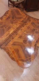 1)Descrizione: stile Luigi XV - Barocchetto. intarsiato con foglie e volute in legni chiari. Gambe mosse in stile Luigi XV.