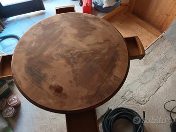Tavolo da gioco antico proveniente dall'Austria. Da dare una rinfrescata ma molto bello. Con quattro cassetti e quattro posacenere a scomparsa. Altezza 80 cm diametro 99 cm.