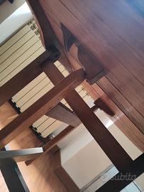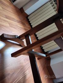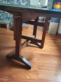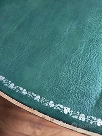Tavolo da gioco artigianale smontabile facilmente per trasporto. Piano di pelle decorato, leggermente basculante. Ottimo oggetto di design.