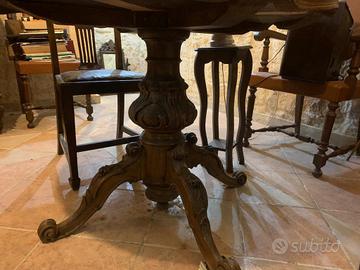 Splendido tavolo rotondo da gioco d’epoca con base artistica intagliata. Proveniente da collezione antiquariato, perfetto per sala giochi o taverna.