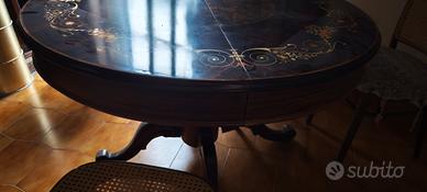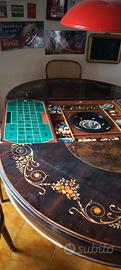 Tavolo da gioco in legno pregiato con all'interno una scacchiera e una roulette come da foto. Unica cosa da mettere a posto , uno dei piedi va reincollato ma non è spezzato o danneggiato. Nel caso siete interessati lo faccio mettere ripristinare io. Non spedito ma solo ritiro di persona. contattatemi per ulteriori foto e informazioni.
