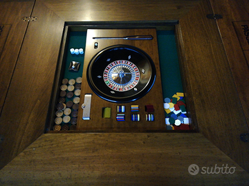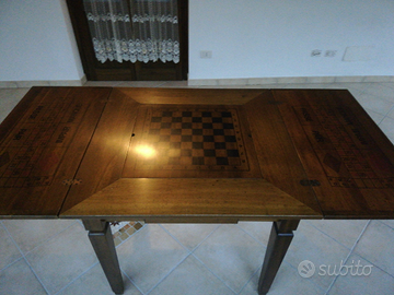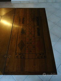 Bellissimo tavolo da gioco in noce richiudibile, chiuso 90 x90, aperto 180x 90, alto 78. Con roulette e gioco dama. 4 cassetti ai 4 lati. 1100 euro