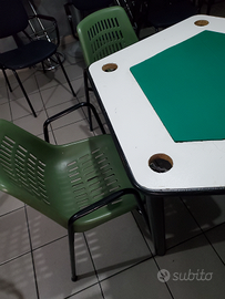 Vendo tavolo da gioco professionale compreso di sedie. Tavolo adatto per tornei di carte ramino, bridge ecc. Disponibilità di più set di tavoli e sedie. Tavoli di forma pentagonali e rotondi. Prezzo di 1 tavolo +5 sedie
