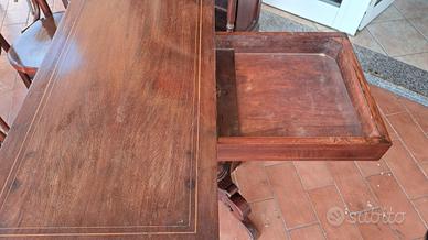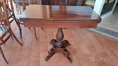 tavolo da gioco inglese primi 900 in piuma di mogano piano in pelle verde con bordatura oro vano porta carte sotto il piano misura 90x45 altezza 78 aperto 90x90...M&P Antichità siamo un negozio specializzato in antiquariato vintage e shabby vendita al dettaglio e all ingrosso scarichi settimanali oltre 500 articoli in negozio, abbiamo una vasta scelta di como comodini tolette armadi letti vetrine vetrinette credenze servanti angoliere librerie tavoli tavolinetti sedie poltrone poltroncine divani lampade lampadari tappeti scrivanie scrittoi secretere ribaltine consolle quadri cornici specchi cassapanche bauli oggettistica varia idee regalo e molto altro ci troviamo a Roma zona Castelverde via Massa San giuliano 26b POSSIBILITÀ DI CONSEGNA E SPEDIZIONE IN TUTTA ITALIA