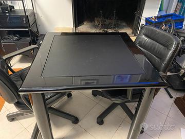 Vendo tavolo da gioco quadrato 87x87 con pannello superiore invertibile, un lato di feltro verde e un lato in pelle nero. Con 4 posa cenere integrati, uno pero è rotto. Smontabili le zampe per il trasporto