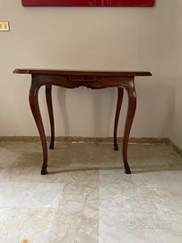 tavolo da gioco in noce con piano intarsiato a spina di pesce , quattro cassetti per fiches , uno per lato, Lombardia XVIII° sec