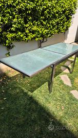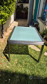 Vendiamo causa cambio arredamento, splendido tavolo da interno in acciaio e Vetro, allungabile, Dimensione chiuso 122x90 raddoppiabile in 244×90 con sistema a scorrimento, veramente bello.