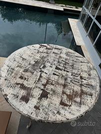 Tavolo con gsmbe in ferro e ripisno di legbo shabby chic. Ottimo stato misure diametro 118cm Altezza da terra 78cm