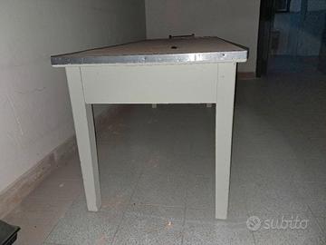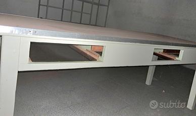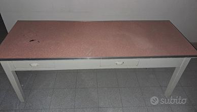 Importante tavolo utilizzato per attività laboratoriali. Lunghezza cm 225, profondità 80, altezza 80 circa. Mancano due cassetti.