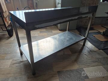 Vendo come da titolo, tavolo in acciaio inox con alzata cm 10 e ritiano inferiore. Misure 140x70x87. Non spedisco, no perditempo.