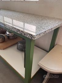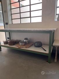 Grande tavolo da lavoro con ripiano in marmo per molteplici attività. Usato per pasticceria e cucina, in ottime condizioni.