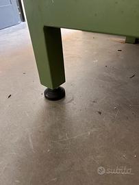 Struttura di supporto in acciaio verniciato con 4 gambe, altezza piano lavoro 830 mm, robusto piedino filettato su una gamba per il livellamento del piano.