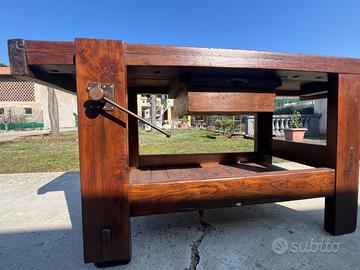 Tavolo originale da falegname totalmente ristrutturato con cassetto. Può essere usato come tavolo per negozi o locali. Può essere usato come elemento d’arredo