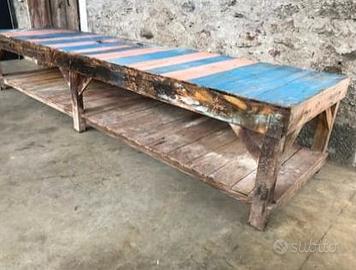 Vendo bellissimo tavolo unico pezzo di 4 metri. Usato come da lavoro ed ora un pezzo di antiquariato. Il tavolo ha anche un piano inferiore. Dimensioni: 405x98x80h.