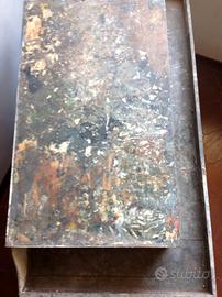 provvisto di ripiano intermedio, cassetto frontale, vano portaoggetti su tre lati - porta i segni dei colori usati - non necessita di restauro - alto 80, largo 97, profondo 52