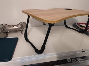 Tavolo da letto con zampe pieghevoli e caricatore USB integrato, porta bicchiere, sostegno per tablet, cassetto laterale, caricatori USB utilizzabili per luce originale del tavolo e ventola, dotata anche di commutatore da USB a type c