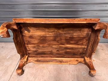 Splendido tavolo da oppio originale, autentico pezzo etnico proveniente dall’Indonesia, realizzato in teak massello naturale. Un arredo di grande fascino e personalità, con linee scolpite, gambe curve e una presenza scenica importante. Non è il solito tavolino, ma un vero pezzo d’arredo artigianale, ricco di carattere. Il legno non è trattato e conserva tutta la bellezza delle venature e delle tonalità calde del teak naturale. Struttura robusta e solida, costruzione artigianale di qualità. Condizioni eccellenti: usato ma ottimamente conservato, perfettamente stabile e integro. Presenta solo lievissimi segni del tempo coerenti con l’autenticità del pezzo. ✔ Originale indonesiano ✔ Teak massello naturale ✔ Lavorazione artigianale scolpita ✔ Pezzo unico, non industriale ✔ Ottimo stato conservativo ✔ Molto scenografico e ricercato Un oggetto che non passa inosservato e che può valorizzare qualsiasi ambiente con stile e calore. Lo vendo per cambio arredo, ma è un mobile importante e di pregio. Se cerchi un vero tavolo da oppio, autentico e bello, questo merita di essere visto dal vivo. Contattami se interessato.