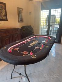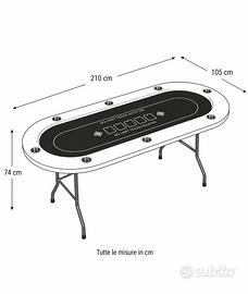 š° Tavolo da Poker Professionale Pieghevole con LED RGB ā Unico Vendo tavolo da poker artigianale di alta qualitĆ , curato nei minimi dettagli. Ideale per partite tra amici, serate evento o per chi vuole un setup professionale direttamente a casa. āø» š§ Struttura solida e pieghevole: ⢠Base in acciaio resistente ⢠Gambe pieghevoli ⢠2 ganci anti-chiusura ⢠Leva in acciaio per blocco totale š StabilitĆ elevata + facile trasporto āø» š© Piano da gioco professionale: ⢠Multistrato 18 mm sagomato ad ellisse (diviso in 2) ⢠Neoprene 7 mm ⢠Panno 3 strati: ā scorrimento perfetto carte ā superficie uniforme ā pulizia semplice āø» šļø Sponda in Alcantara imbottita: ⢠Multistrato 9 mm ⢠Gommapiuma 3 cm ⢠Larghezza 15 cm ⢠Rivestimento in alcantara lavabile š Comfort massimo anche per lunghe sessioni āø» š„¤ 8 portabicchieri in acciaio inox: ⢠Fissati alla base ⢠Stabili, non si muovono āø» š” LED RGB integrati: ⢠Profilo flessibile con copertura opaca ⢠Luce uniforme e professionale ⢠LED impermeabili alta qualitĆ Controllo: app + telecomando Alimentazione: integrata (colleghi una prolunga ā pronto) āø» š¦ Mensole portaoggetti: ⢠4 totali (2 per lato) ⢠50 cm lunghezza ā 3 cm altezza ⢠Compatibili con chiusura ⢠Per telefono e/o accessori š Verniciate di bianco āø» š© Struttura ultra stabile: ⢠24 viti + 24 bulloni + 24 dadi ⢠Tutti sovradimensionati š Nessun movimento durante il gioco āø» š Dimensioni: ⢠Aperto: 210Ć105Ć75 cm ⢠Chiuso: 105Ć105Ć23 cm š Occupa poco spazio Peso: 30ā35 kg (trasporto in 2 persone) āø» ā PerchĆ© comprarlo: ⢠Pezzo unico artigianale ⢠QualitĆ superiore ai tavoli commerciali ⢠Design professionale + LED scenografico ⢠Comodo, stabile e pratico ⢠Perfetto anche per tornei e serate organizzate āø» š° Prezzo e pagamento: ⢠Bonifico ⢠PossibilitĆ rate ⢠Trattabile āø» š© Contattami subito per info, foto o video. Tavolo pronto allāuso, non richiede montaggio, ideale anche come idea regalo per appassionati di poker.
