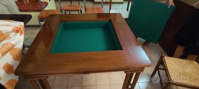 Vendo tavolo da poker in legno, elegante e robusto, con piano rivestito in panno verde.