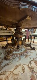 Finemente abbinato a sei sedie in stile Luigi Filippo, caratterizzate da forme arrotondate e morbide.