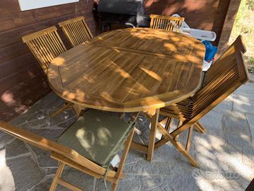 Tavolo da pranzo allungabile 180/240x120 cm in legno teak - Louis codice Deghi: LS-18V (533,99 €) 6 sedie Deghi Louis: LSS-1LS (54 € cad) Il tutto va ritirato al Campeggio Valmilana (AL)