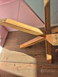Il tavolo è usato, presenta lievi tracci di usura sul vetro (quasi sempre usato con tovaglia per protezione) e qualche segno di colore sulle gambe in legno, segni dovuti allo sfregamento della sedie. Vedere foto per i dettagli.