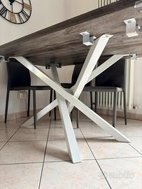 Vendo tavolo da pranzo 160x90 allungabile effetto legno o cemento grigio con gambe metalliche incrociate bianche, ancora in perfette e buonissime condizioni (pari al nuovo)