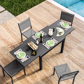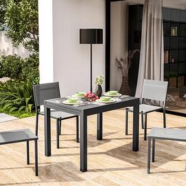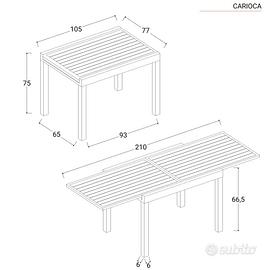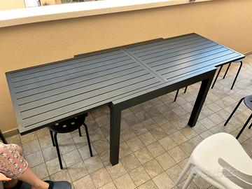 Il tavolo non presenta alcun difetto. L’apertura è scorrevolissima. Il colore è intatto. Di seguito descrizione caratteristiche come da sito. Forma Rettangolare Dimensioni 105 x 75 cm, Estensione 210 cm, Altezza 75 cm, Materiale Alluminio, colore Antracite, Apertura Scorrimento, Allungabile.
