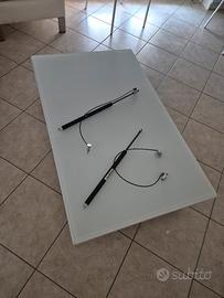 Vendo tavolo con piano in vetro opaco, struttura bianca. È allungabile e si alza. Misure 120 cm x 70 cm, si allunga per ogni lato di 40 cm. quando è completamente aperto arriva a 200 m. Ho comprato il pistone a gas nuovo, come si vede in foto, permette che il tavolo si alzi, a chi interessa bisogna che cambi per conto suo il pistone a gas. Insieme al tavolo regalo due sedie bianche ed eleganti. Ritiro in loco a carico dell' acquirente. Per favore non perditempo. Solo a chi interessa. Ovviamente non lo spedisco. Si ritira in loco e si paga di persona. Non assicurazioni ne tanto meno spedisco e poi pago. Grazie