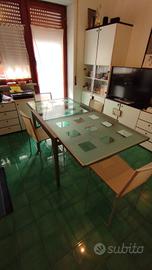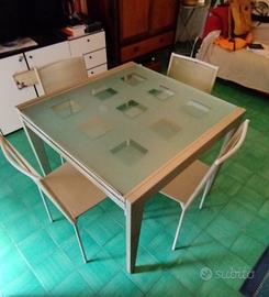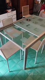Tavolo in metallo e vetro 90x90 allungabile 90x180 più 6 sedie di cui 2 pieghevoli